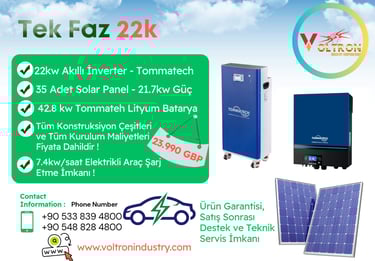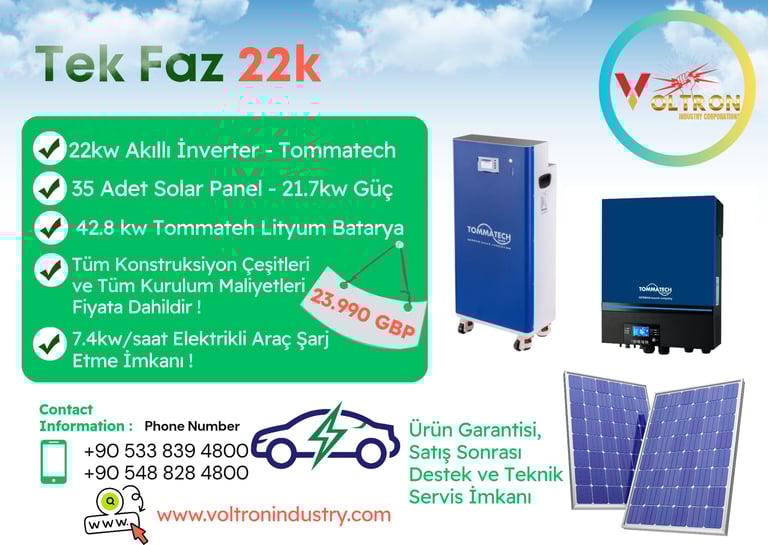 Tek Faz 22k Solar Paket; Evinde Elektrikli Aracını Şarj Etmek İsteyen Müşterilerimiz İçin Tasarlanmıştır.