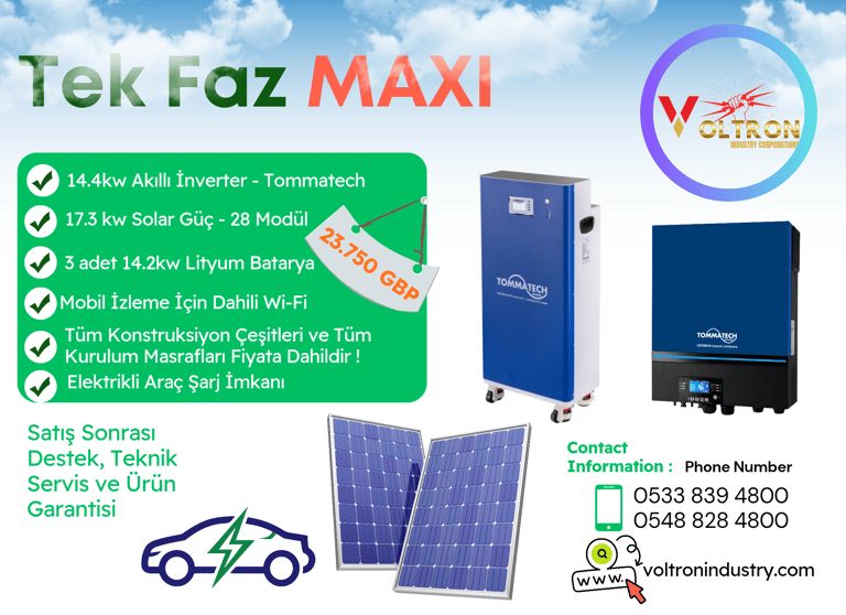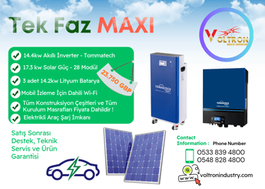 Tek Faz Maxi Plus Solar Paket; Evinde Elektrikli Aracını Şarj Etmek İsteyen Müşterilerimiz İçin Tasarlanmıştır.